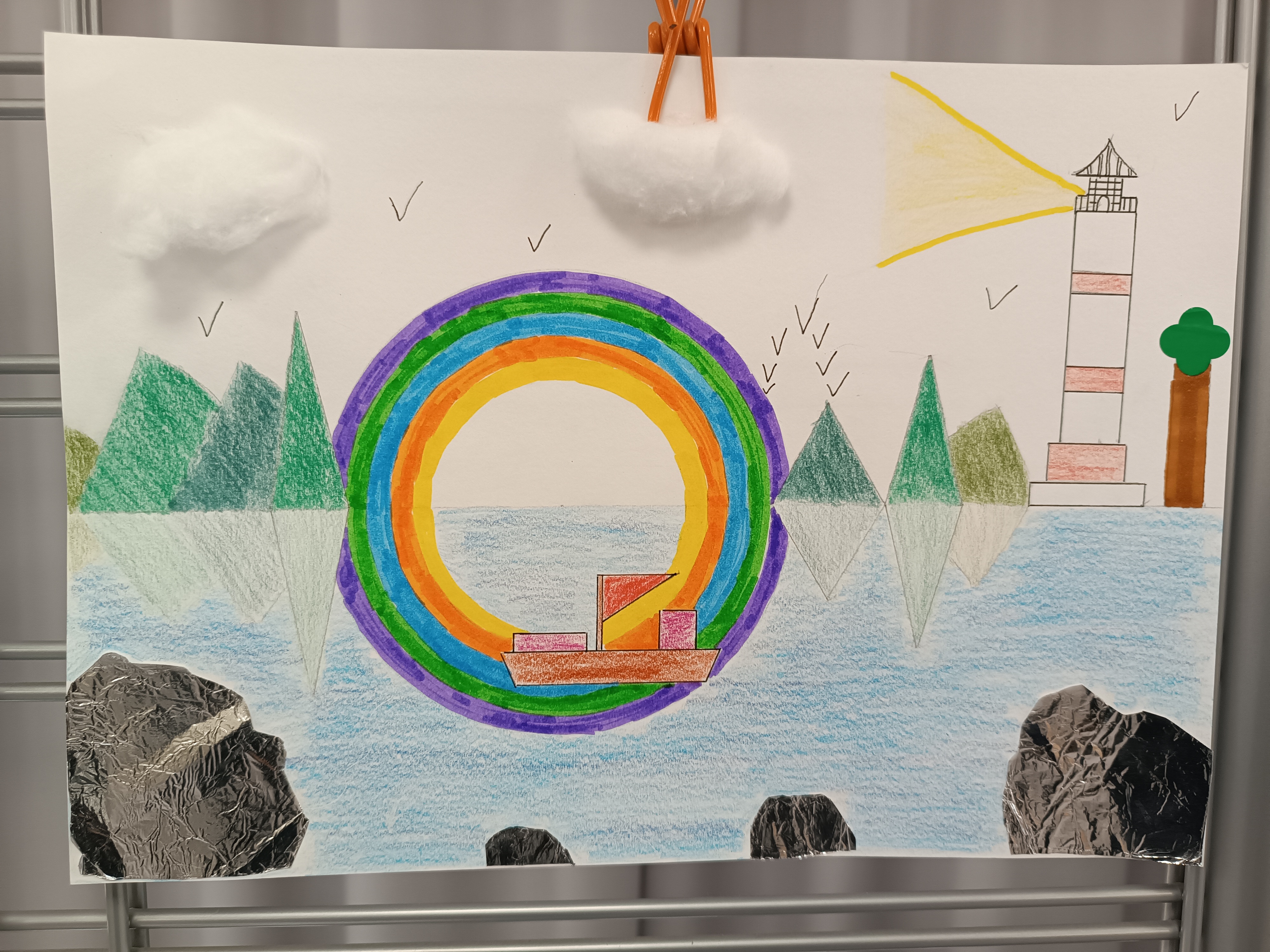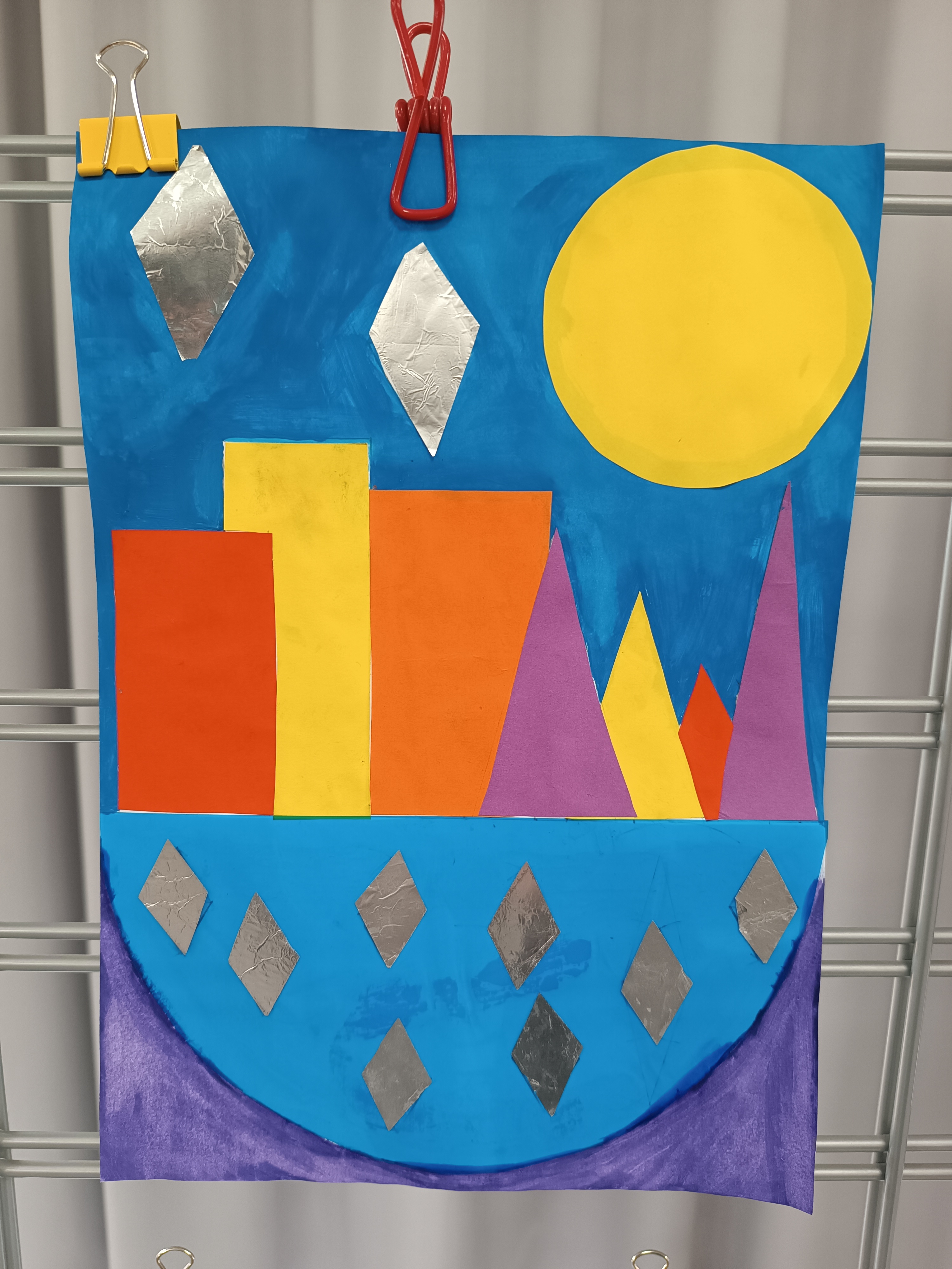 Les élèves de 6e1 et de 6e2 ont travaillé sur la construction de polygones et de cercles en Mathématiques avec M. Rehel, mais de façon originale en imaginant leur paysage géométrique ! Voici quelques unes de leurs œuvres, la seule limite était de construire 5 éléments géométriques, et de laisser libre court à leur imagination.
