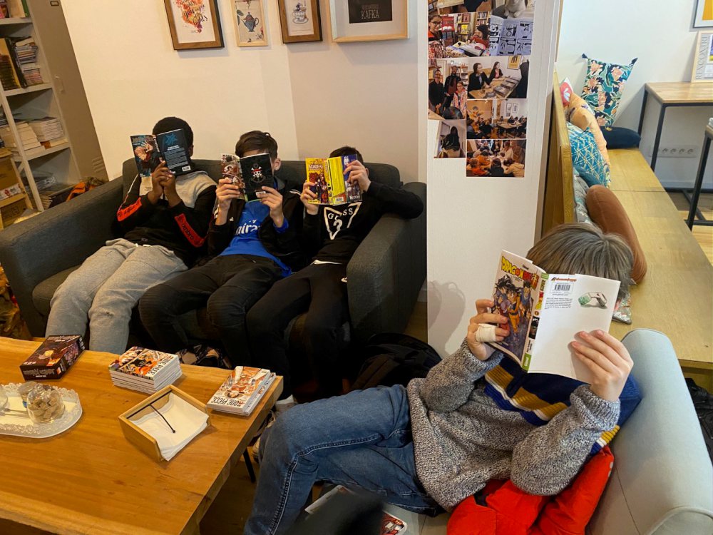 Dans un second temps, les 09/03 et 23/03/2023, les élèves ont visité la librairie et ont pu utiliser leurs bons d’achat. Les mangas ont été particulièrement plébiscités, mais certains élèves ont découvert des romans, sur les conseils précieux de la libraire.